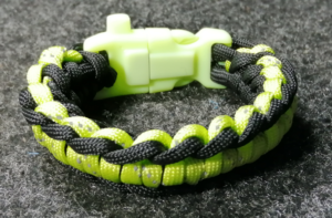 Pulsera multiuso Paracord de Supervivencia color Negro/Neón. Más de 4 metros de cuerda de paracaídas de 7 hilos, brújula, silbato y pedernal para encender el fuego.